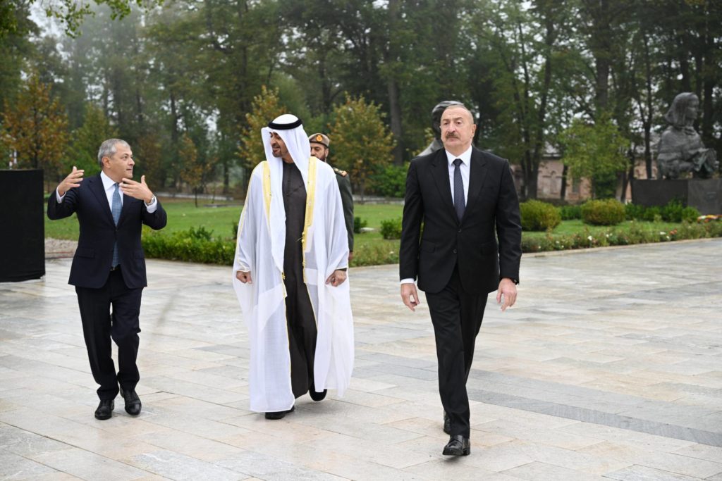 Sentyabrın 16-da Azərbaycan Respublikasının Prezidenti İlham Əliyev və Birləşmiş Ərəb Əmirliklərinin Prezidenti Şeyx Məhəmməd bin Zayed Al Nəhyan Şuşada Azərbaycanın tanınmış şəxsiyyətləri Natəvanın, Bülbülün və Üzeyir Hacıbəylinin erməni işğalçıları tərəfindən güllələnmiş heykəllərinə baxıblar.