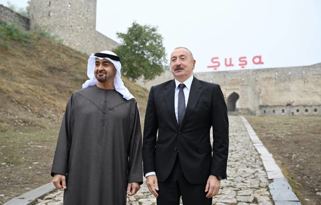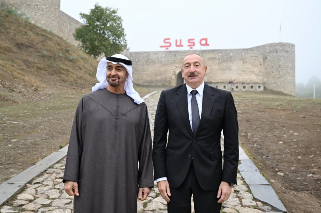 Sentyabrın 16-da Azərbaycan Respublikasının Prezidenti İlham Əliyev və Birləşmiş Ərəb Əmirliklərinin Prezidenti Şeyx Məhəmməd bin Zayed Al Nəhyan Şuşa qalasının önündə foto çəkdiriblər.