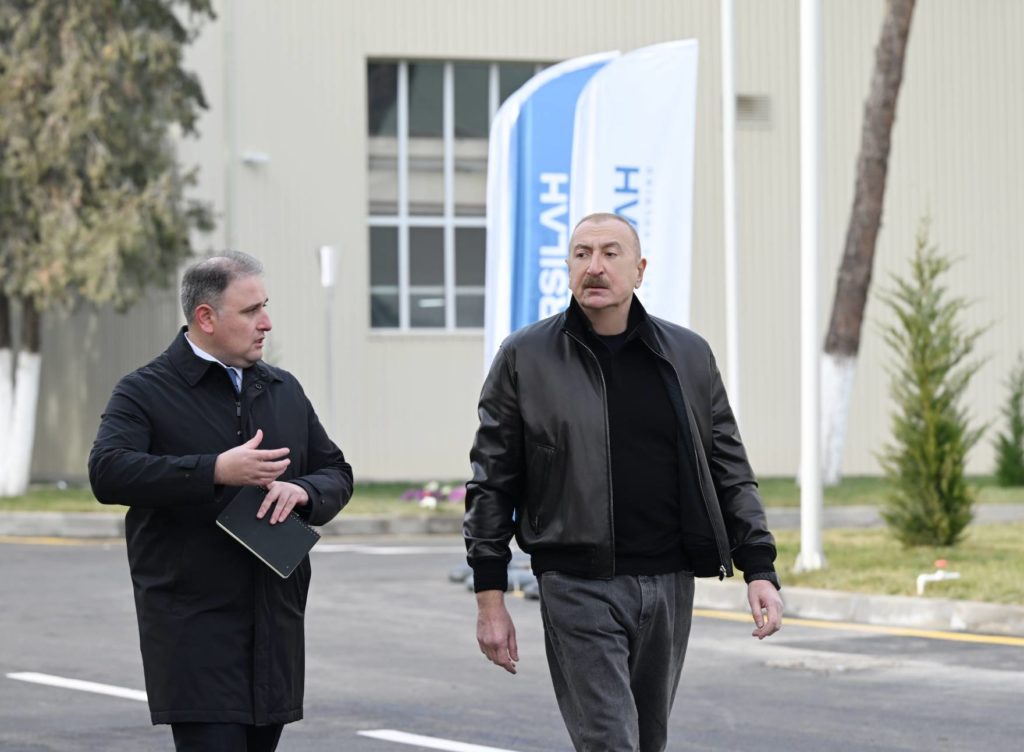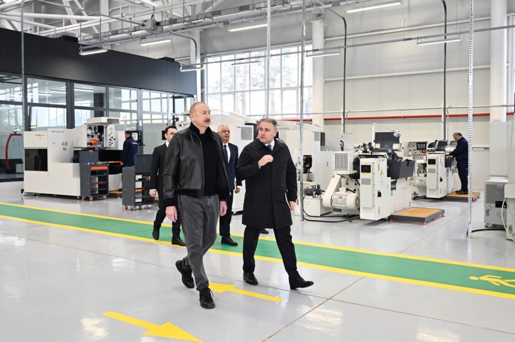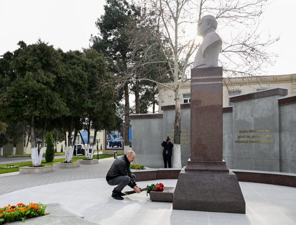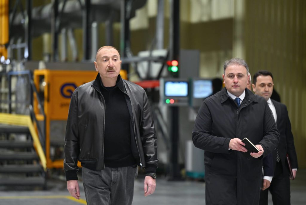 Dövlətimizin başçısı əvvəlcə Ulu Öndər Heydər Əliyevin zavodun həyətində ucaldılmış büstü önünə gül dəstəsi qoydu.