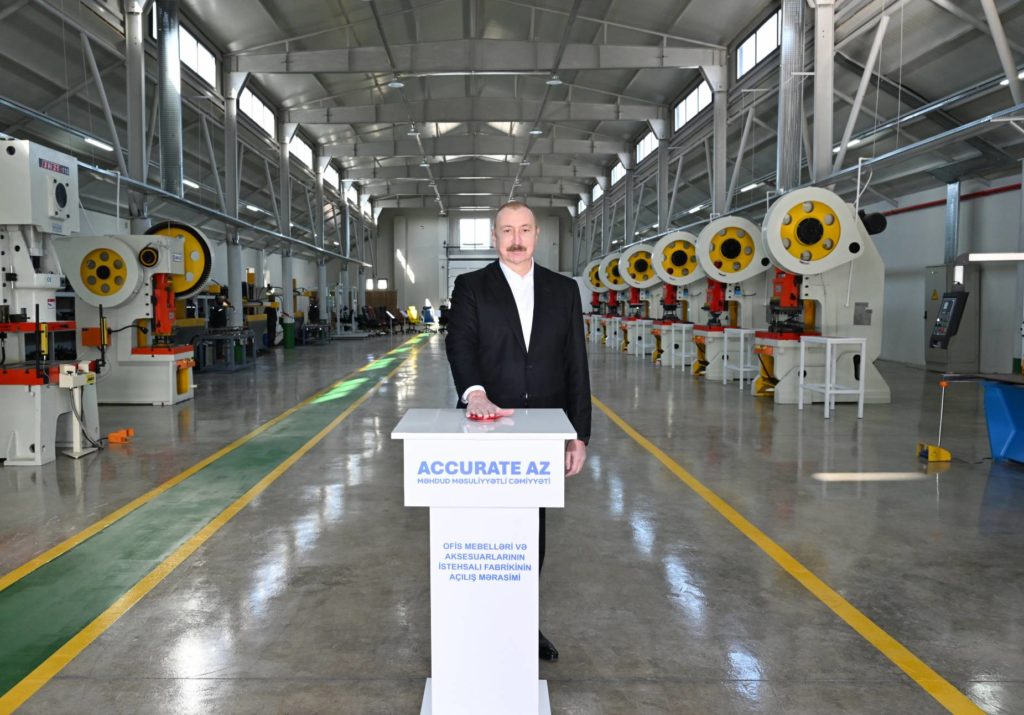 İlham Əliyev Xocalı rayonunun Ballıca kəndində “Accurate Az” MMC-nin ofis mebelləri və mebel aksesuarlarının istehsalı müəssisəsinin açılışında iştirak edib